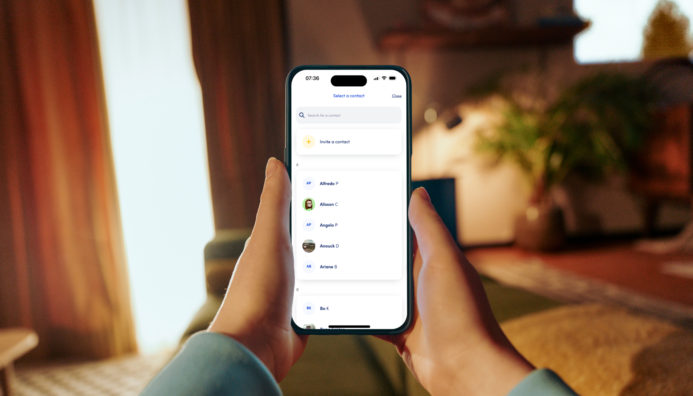 Scanning a QR code is handy when you’re together, but your contact list gives you the freedom to pay whenever you want – without having to rely on anyone else. Just look up the name, enter the amount, and you’re done.