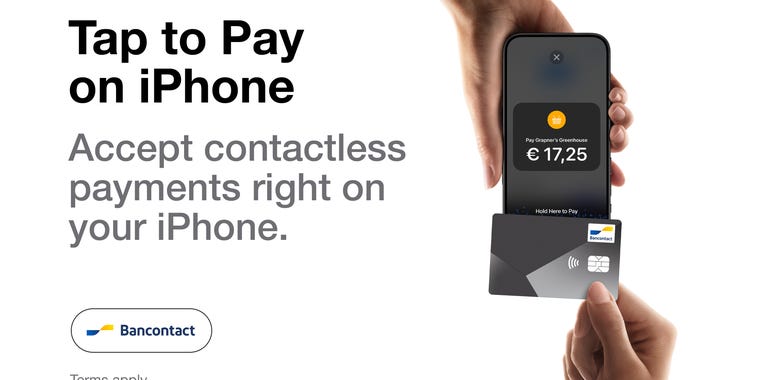 With Tap to Pay on iPhone and Bancontact, you can accept all type of in-person contactless payments on your iPhone-no extra terminal or hardware needed.